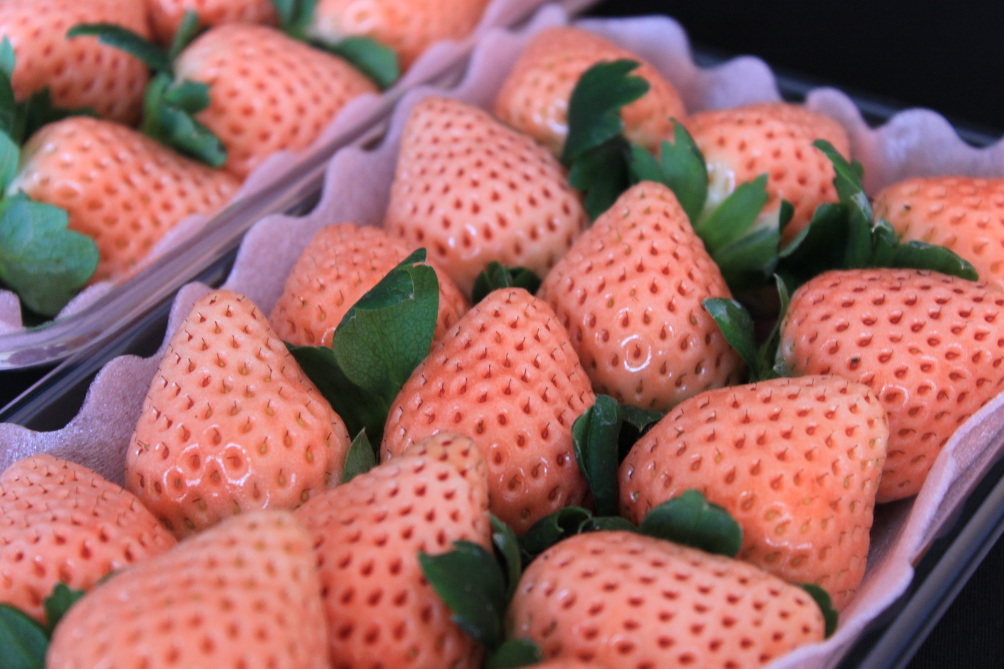 淡雪…志布志発祥の幻の白いちご。さがほのかの突然変異から生まれた品種で、香りが良く優しい甘みとほんのりピンク色の見た目も可愛らしいいちごです。